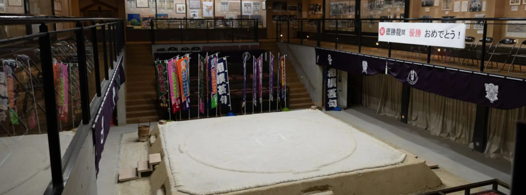 館内には大相撲で使用されている土俵が同様なサイズで展示されています。相撲の歴史も知る事が出来ます。
